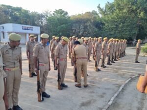 पुलिस अधीक्षक मऊ श्री कमलेश बहादुर द्वारा पुलिस लाइन मऊ में साप्ताहिक शुक्रवार की परेड के अवसर पर परेड की सलामी लेकर परेड का निरीक्षण किया गया तथा सम्बन्धित को आवश्यक दिशा-निर्देश दिए गए इस दौरान महोदय द्वारा शांति/सुरक्षा व्यवस्था सुदृढ बनाए रखने के दृष्टिगत फोर्स को ब्रीफ करते हुए बताया कि सदैव मानसिक एवं शारीरिक रूप से तत्पर रहें। दंगा निंयत्रण के समस्त उपकरण सक्रिय दशा में सदैव अपने साथ रखे। जिससे किसी भी आकस्मिक परिस्थिति से निपटा जा सके ।